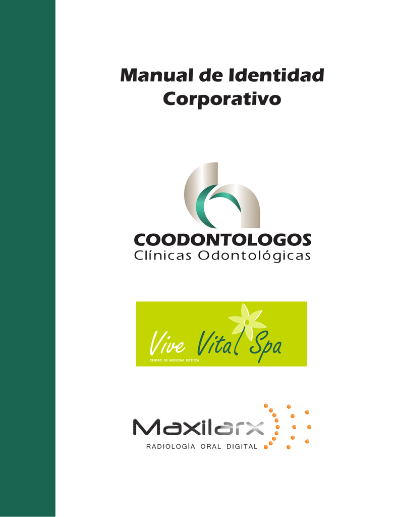 Manual de Identidad Corporativo Vive Vita Spa CENTRO DE MEDICINA ESTÉTICA RADIOLOGÍA ORAL DIGITAL 1 Introducción El siguiente manual reúne los estándares de diseño e identidad corporativa necesarios para establecer un mensaje visual efectivo y definido que se aplica para todos los materiales que se utilicen en la proyección organizacional. El presente dossier suministra las disposiciones para el uso apropiado de la imagen corporativa, su ubicación, tamaño y tipos de letras que se deben utilizar. Será una herramienta para regular el uso apropiado de la imagen, sus características fundamentales para la utilización en los diferentes productos, fortaleciendo la precisión del mensaje y su eficacia. El manual presenta una identidad tipográfica, geométrica y cromática. Manual de Identidad Corporativo Con el fin de proyectarnos como una organización con excelencia lo invitamos a utilizar este manual y le solicitamos su cooperación en la implementación y fortalecimiento de nuestra identidad corporativa. 2 - Diseño del Logotipo 2.1 COODONTOLOGOS Clínicas Odontologicas El logotipo de Coodontologos es la representación tipográfica del nombre de la marca. Manual de Identidad Corporativo A continuación podrá encontrar las diferentes versiones gráficas para diferentes usos: 2 - Diseño del Logotipo 2.1 Construcción Geométrica del Símbolo El símbolo es la característica geométrica de la empresa por la cual nos vemos percibidos a partir de los sentidos haciéndola nuestra carta principal de presentación. Recuerde que el símbolo no podrá ser utilizado ni modificado de forma diferente a la mostrada. 100 122 40X 31X 26,5X 20X 20X 20X 40X 1,4X Manual de Identidad Corporativo 8,5X 40 4,7X 14,9X 21X 21X 10 14,7X 21X 8,7X 20 2 - Diseño del Logotipo 2.2 Construcción Básica del Logosímbolo Fuente “ ERAS BOLD ITC ” para COODONTOLOGOS Fuente “ ERAS Medium-Medium ” para Clínicas Odontológicas 3,6X 3,33X Y/5 Y/12 12X Y 3Y X/4,2 X Y 1 2,5 Y/2 1,25Y Y/2 Y Y 1,1 X X X 2.3 Tamaño Mínimo Todas las versiones del logotipo son formulaciones vectoriales y pueden ser ampliadas indefinidamente. El tamaño mínimo en que se debe utilizar el logotipo para asegurar su legibilidad es de 3 cms x 1,5 cms. 1,5 cm 1 Manual de Identidad Corporativo X/2.33 3 cm 2 - Diseño del Logotipo 2.4 Colores Corporativos El proceso de impresión puede presentar numerosos factores que afecten a la reproducción del color, por eso es fundamental prestar mucha atención a los colores de prueba de impresión para asegurar que los resultados finales serán los más cercanos a los colores definidos Versión en escala de “ Warm Gray 5c ” a Blanco, Nuevamente “ Warm Gray 5c ” a Blanco. Degradés de Verde 336c a 3258c y nuevamente a Verde 336c, paralelo y perpendicular. Negro para nombre Corporativo. *Se deben mantener los porcentajes y ubicaciones según el archivo digital. Manual de Identidad Corporativo El logotipo puede ser reproducido según los esquemas mencionados en construcción, en tintas especiales o en materiales equivalentes al color que produzcan el efecto visual de los siguientes Pantones: PANTONE Warm Gray 5 C C = 0 M = 6 Y = 6 K = 34 Warm Gray 5 C PANTONE 336 C C = 100 M = 0 Y = 65 K = 47 Pantone 336 C PANTONE 3258 C C = 60 M = 0 Y = 34 K = 0 Pantone 3258 C 2 - Diseño del Logotipo 2.5 Uso del Logosímbolo Se maneja el logotipo de manera monocromática con los colores institucionales que pueden servir para varias aplicaciones. La reproducción del logotipo podrá realizarse sobre fondos oscuros o claros y se deberá evaluar el contraste en cada caso para su aplicación. Manual de Identidad Corporativo El uso será siempre en policromía o en escala de grises. 2.6 Versión en Blanco y Negro El uso de esta versión de la marca estará registrado a soporte donde por motivos de restricción de color y economía de costos sea necesario reproducir la marca en un solo tono (prensa, fax, etc.) 2 - Diseño del Logotipo 2.7 Fuentes Uso exclusivo para logotipo ERAS BOLD ITC ABCDEFGHIJKLMNÑOPQRSTUVWXYZ abcdefghijklmnñopqrstuvwxyz 0123456789 Textos principales y secundarios ERAS MEDIUM MEDIUM ABCDEFGHIJKLMNÑOPQRSTUVWXYZ abcdefghijklmnñopqrstuvwxyz 0123456789 TW Cen MT Manual de Identidad Corporativo ABCDEFGHIJKLMNÑOPQRSTUVWXYZ abcdefghijklmnñopqrstuvwxyz 0123456789 Slogan y nombres comerciales High Tower Text ABCDEFGHIJKLMNÑOPQRSTUVWXYZ abcdefghijklmnñopqrstuvwxyz 0123456789 Señalización A ri al A B C D E FGH I J K LMN Ñ OPQRSTUVWXYZ abc def ghij k l m nñopqrstu vwxyz 0123456789 2 - Diseño del Logotipo 2.8 Uso Incorrecto Manual de Identidad Corporativo El uso incorrecto es la demostracíón equivocada y de cómo no se debería usar el logotipo. COODONTOLOGOS Clínicas Odontológicas COODONTOLOGOS Clínicas Odontológicas 3 - Papelería Formato Papelería Genérica Versión Horizontal Ejemplo Tarjeta Personal Maritza Guerrero Romero Carrera 8 N° 45 - 73. PBX 340 55 90 - Ext: 116 Telefax: 338 14 70 email: [email protected] Bogotá, D.C. Manual de Identidad Corporativo Formato Papelería Genérica Versión Vertical Ejemplo Carta DIRECCIÓN GENERAL NORTE Avda. 13 N°. 103 - 25 • Tel: 218 30 23 - 218 30 36 • Bogotá D.C. SEDE ADMINISTRATIVA PALERMO Carrera 8 N° 45 - 73 • Tel: 340 55 90 - Fax: 338 14 70 • Bogotá D.C. CALI: Avda. 5 N° 25 N - 14 • Tels: 660 55 49 - 660 55 57. 4 - Señalización PORTAFICHES 50 x 41 cm Manual de Identidad Corporativo CARTELERA 70 x 100 cm Recepción BUZON 15 x 60 cm C ons ultorio 1 10 x 30 cm B as uras 15 x 15 cm 15 x 15 cm 5 - Diseño del Logotipo 5.1 Vive Vital Spa Centro de Medicina Estética El logotipo de Vive Vital Spa es la representación tipográfica del nombre de la marca. A continuación podrá encontrar las diferentes versiones gráficas para diferentes usos: Vive Vita Spa CENTRO DE MEDICINA ESTÉTICA Vive Vita Spa Manual de Identidad Corporativo CENTRO DE MEDICINA ESTÉTICA 5 - Diseño del Logotipo 5.2 Construcción Básica del Logo